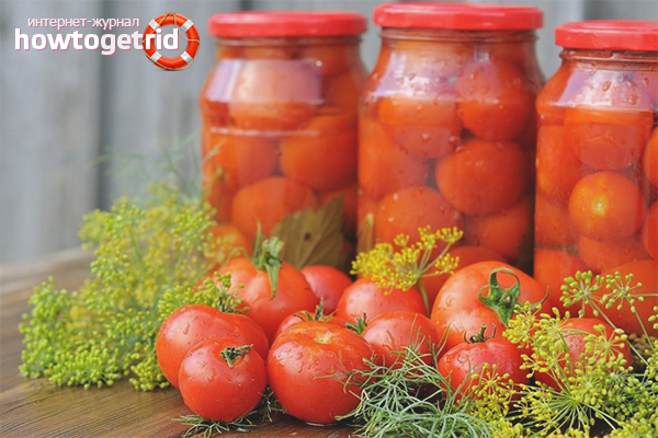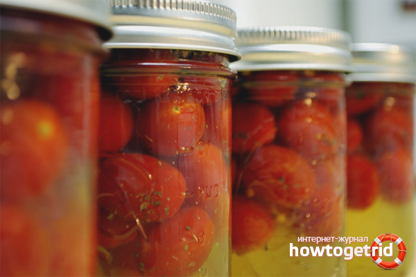 - Поставете домати в редици, като редувате плодовете с чесън (предварително нарязани на малки парченца). Корк контейнерите с калаени капаци, вземи бурканите в мазето.