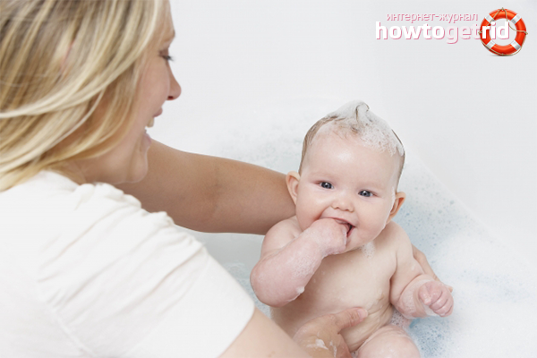 - Бебешка безопасност. Когато се къпете в бебешка вана, рискът от увреждане на детето е минимален - той трябва да бъде поставен на стойката и внимателно да пазят краката. Но когато се използва конвенционална вана, трябва да се внимава бебето да не поглъща вода - да му купи шапка, снабдена с пяна или надуваема яка, действа на принципа на кръг, с който децата се научават да плуват в морето, но носят около врата и поддържат главата. В същото време, бебето трябва да се спусне във водата, трябва да се въведе бавно, в противен случай може да се уплаши.