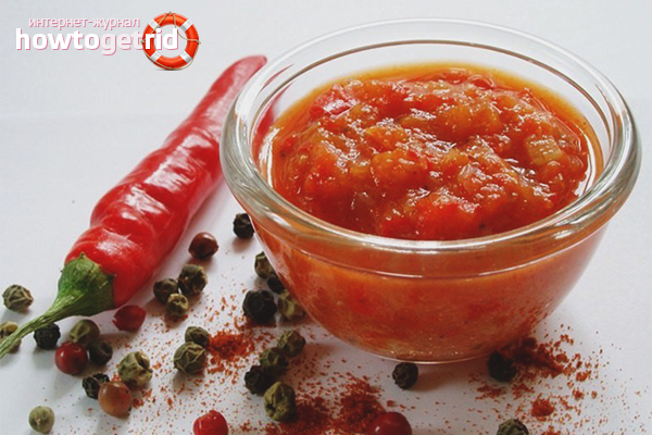 Абхазската технология за готвене е смятана за основата на основите, така че има смисъл да го разгледаме на първо място. Съгласно националната рецепта, домати не се добавят, богат цвят се постига благодарение на горещия червен пипер.