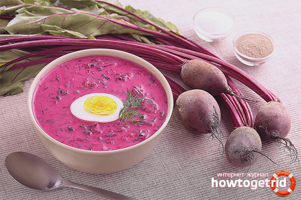 - Хвърли подготвеното цвекло в общ съд. Съставът се препоръчва да преминава през кухненския процесор. Сервирайте сирене на скара. Супата може да бъде подправена с лимонов сок.