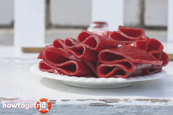Печеният лист е покрит с пергаментова хартия и сместа се излива със слой не повече от 6 мм. Във фурната бурканът изсъхва, както и захаросаните плодове. Времето и температурата са еднакви. В електрическа сушилня, пастилата се излива върху специална мрежа.