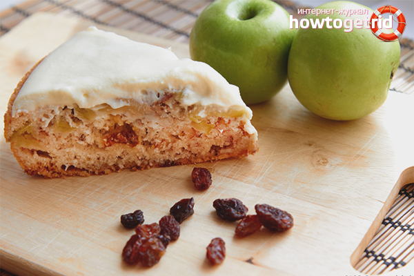 - След определения срок, оценете готовността, изключете фурната, извадете тортата. Оставете го да се охлади до стайна температура, след това се поставя върху голяма чиния. Поръсете с канела, какао на прах или пудра захар.