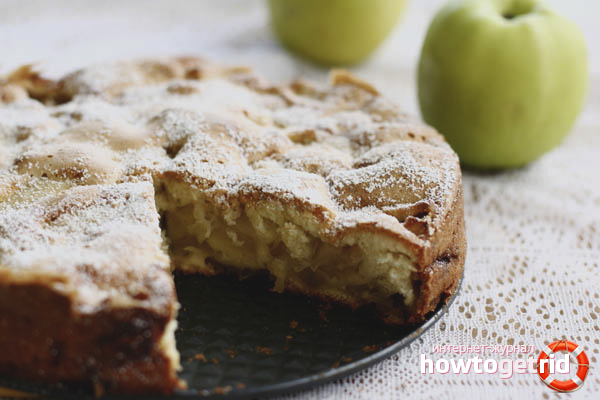 - Включете фурната и я оставете да се загрее до 180 градуса. Изсипете тестото с ябълки в матрицата, изпратете в шкафа (средния рафт).Печете за около 25-45 минути, проверете готовността с клечка за зъби.