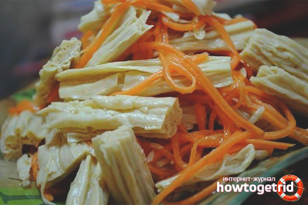 Има много рецепти за готвене аспержи. Нарязаният зеленчуков зеленчук върви добре с основните ястия. Поради съдържанието на аспержи в състава на салатата, храната получава деликатен послевкус. Традиционно, аспержите се приготвят като самостоятелна закуска със сушени кореноплодни зеленчуци. Въпреки това, маслото, морковите, гъбите и печено сусам често се добавят към салатата. Помислете за популярните рецепти в ред, даваме стъпка по стъпка инструкции за правене на корейски закуски.
