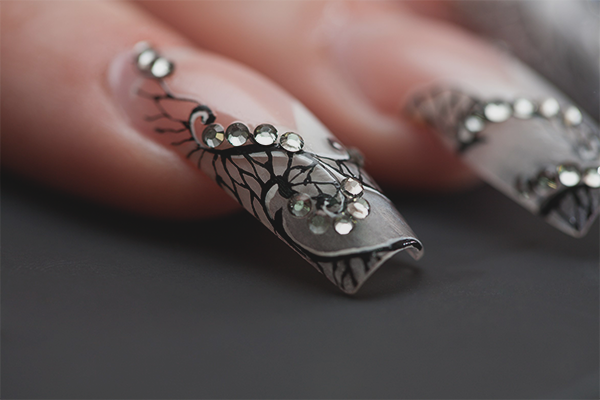 - При натрупаните нокти е по-добре да покриете гвоздеите със специален гел или лепило, предназначено за фиксиране на декоративни елементи.