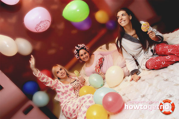 Нощен салон. Тази вечер можете да организирате истински спа център. Това е любимото забавление на всички момичета! Можете да опитате върху лицето, тялото и ръцете на различни маски, като например плодове или шоколад. За да вдигнете къдрици на косата, за да направите красива фризьорка. Можете да организирате конкурс за най-оригиналния маникюр и педикюр, грим и коса. Между другото, не забравяйте, че във всеки спа-салон природни билкови чайове, приятна релаксираща музика и ароматизирани свещи трябва да присъстват.