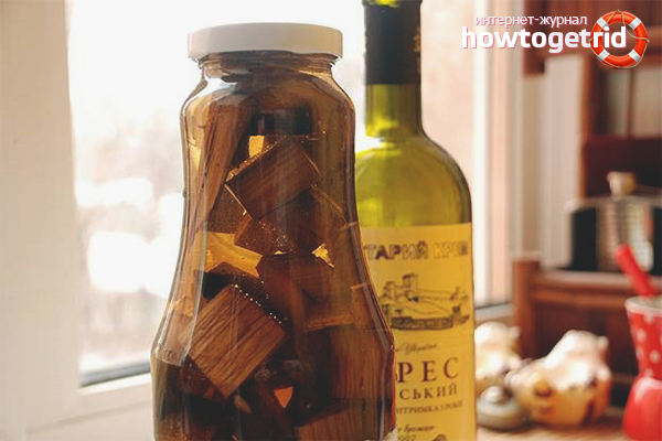 - Разклатете буркана, покрийте го и го оставете на тъмно място. Времето на експозиция варира от 14 до 30 дни. Невъзможно е да настоявате за бренди повече от месец, в противен случай алкохолът ще извади твърде много танини от чиповете, което ще развали вкуса и аромата.Можете също така да поставите съда на отоплителните уреди, като по този начин намалите времето до 10-12 дни, но това е изключително грешен начин за инфузия.
