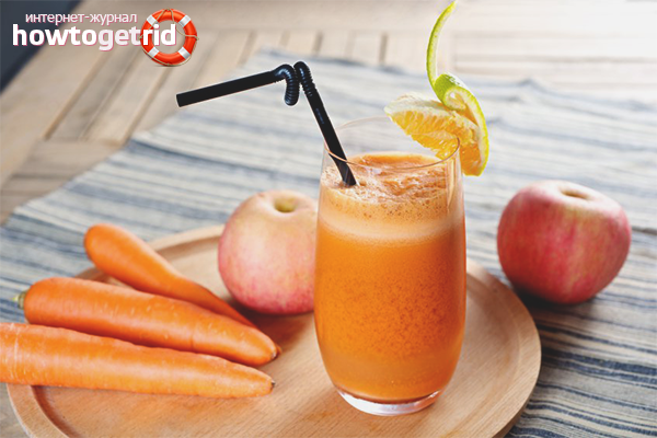 - Сега изцедете сока от плодовете по удобен начин. Оставете пресни за половин час, за да настоявате. Внимателно измийте морковите и отстранете всички замърсявания. Изпратете до сокоизтисквача, изцедете течността.
