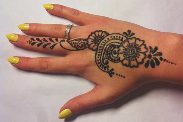 Алтернатива на маркерите е боя за печати и печати. Ако искате да използвате този вид мастило, достатъчно е да навлажнете козметичния тампон в него, след това да го нанесете с биещо движение върху кожата.