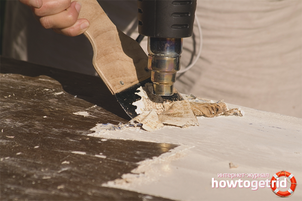 Ако старата боя не може да се измие и шпатула, препоръчително е да се армирате със сешоар в сградата. Оборудването може да бъде наето или закупено. Оказа се, че не повече от няколко буркани с разтворител.