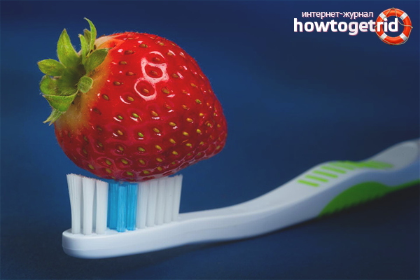 - И тази рецепта ще бъде привлекателна за много хора. Опитните хора твърдят, че ягодата има избелващи свойства. Използвайте само плодовете, за да постигнете желания резултат. След като натроши ягода в каша, той се нанася върху четка и зъби с обичайните движения. След това процедурата се повтаря, но с използването на паста за зъби.