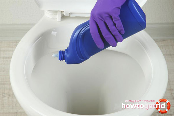 Ще трябва да извадим максималното количество течност от тоалетната. Ако е възможно, тогава всички желани са желани. След това агентът се излива и се оставя в продължение на поне два часа. След това тоалетната се промива с обилно количество вода.