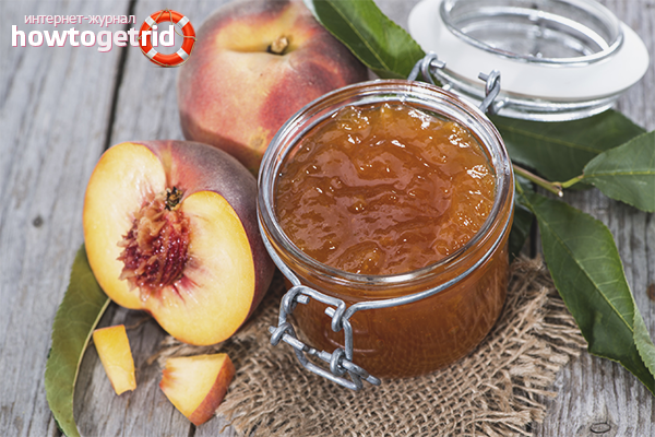 Оценете конфитюра от праскова, приготвен според традиционната рецепта. Погледнете по-отблизо технологиите с добавяне на нектарини, портокали, ябълки, лимонова кора, ароматни подправки (канела, шафран, карамфил). Направете храна в бавна готварска печка или в микровълнова фурна, променете количеството захар.