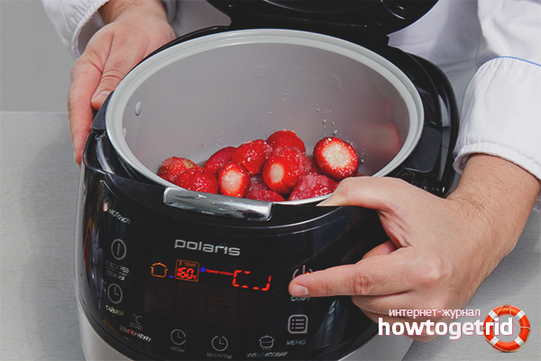 - Включете таймера на устройството в продължение на 15 минути, сварете сместа под капака. Не забравяйте леко да смесвате масата, така че да не гори. В края на манипулационния пакет съставът на стерилизирани контейнери.