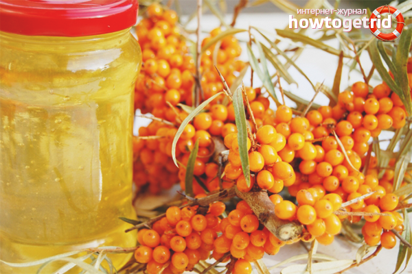 - Пригответе морския зърнастец за готвене, премахнете дръжката и повредените плодове.Изплакнете плодовете в гевгир, облечете се върху кърпа, изчакайте да изсъхне. Изсипете меда в саксия за емайл.