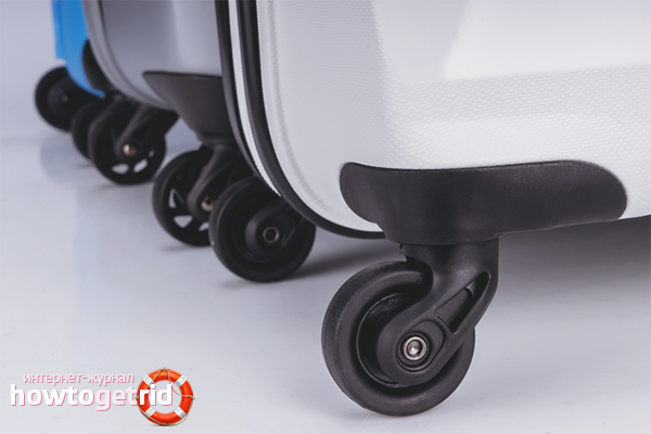 - Ако разгледаме куфара на четири колела, струва си да се има предвид, че е трудно да се търкаля на неравна повърхност и е невъзможно да се вдигне натоварен атрибут от дръжката за теглене.