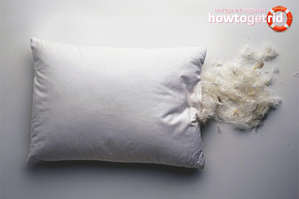 - Надолу / перо. Най-често срещаният вид пълнеж, който поглъща влага бързо, запазва топлината. Мекотата на атрибута дава пух, а твърдостта - перото. Тази опция не е подходяща за алергии, тъй като причинява сърбеж, кихане и други симптоми с непоносимост към пух. Възглавниците са нещо от миналото, защото те са трудни за почистване и са размножителни площи за паразити. Дата на изтичане на срока - 5 години, измиването се изисква всяка година.