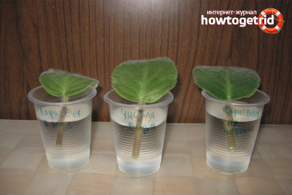 - Резници. Вегетативното възпроизвеждане на виолетово е най-популярно, а методът на рязане е най-простият. Но трябва да отрежете само листа, разположени на втория ред на растението.Възможно е да се разпространява чрез присаждане по 2 начина: чрез засаждане директно в глинен субстрат или чрез предварително заличаване на листа в разтвор на активен въглен.
