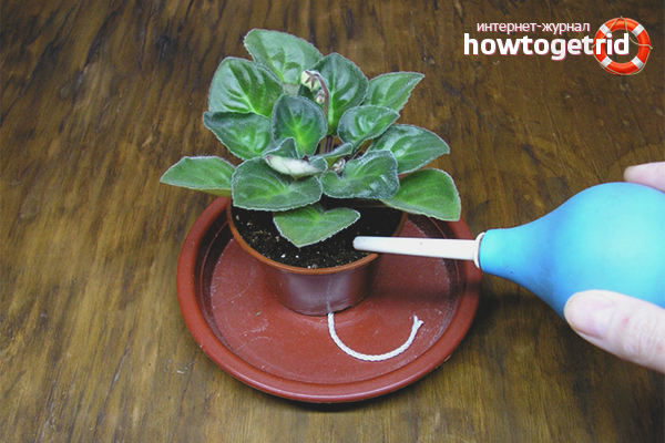 - Режим на напояване. Виолето обича да "пие", но е невъзможно отново да навлажнява почвата - да регулира поливането. Честотата му не трябва да надвишава 2 пъти седмично по всяко време на годината. Но индикаторът за следващото напояване трябва да бъде степента на влага на земната основа. Най-добрият вариант би бил напояването през палета - лежи върху него глина или торф.