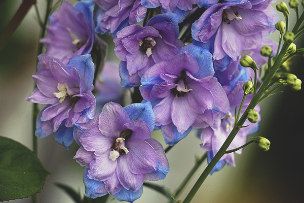 В здрав делфиниум листата са наситени зелени. Ако горната част е избледняла, цветът се нуждае от повече слънце или от най-горната превръзка.