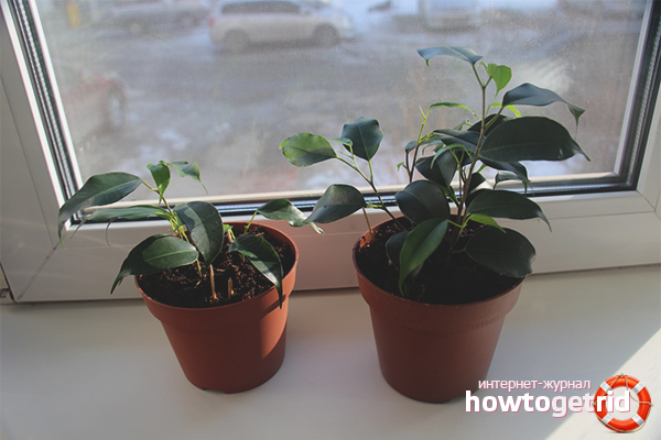 Фикус като висока влажност. Ето защо те трябва да се напръскват редовно с леко топла вода. Или поставете до саксията допълнителни контейнери с вода, мокра глина, влажен мъх.