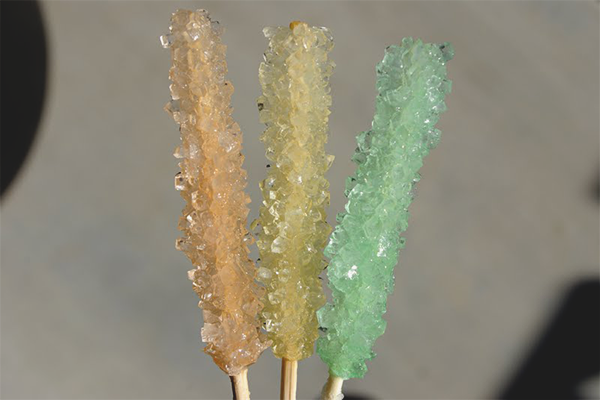 Кристалът се състои само от една съставка: захар, разтворен във вода. Твърдите вещества привличат по-малки частици, които се придържат един към друг и замръзват. Захарта, плаваща във вода, се нуждае от основата - шиш. Или по-скоро твърди кристали на подсладителя, които трябва да се придържат към пръчката.