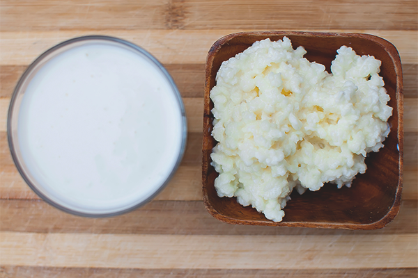 Бучките млечни гъбички се измиват добре в купа с варена вода. Внимателно измийте цялата слуз и остатъците от кефира. Малко компресирайте буците с пръсти. Те трябва да са гъсти, еластични, бели или жълти. Твърде големи, празни буци вътре изхвърлят без съжаление. Те няма да имат полза. Останалите от нас отново изсипваме мляко, повтаряме всичко.