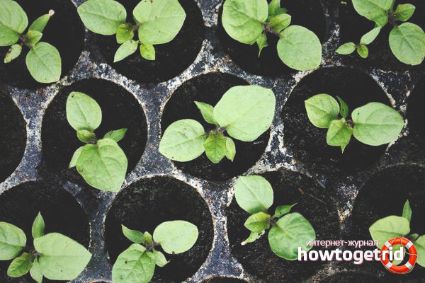 Семената, които са в почвата, не се нуждаят от светлина, само в топлината и липсата на течения. Клетки или саксии, покрити с черен филм, привличащи слънчевите лъчи или стъкло. Премахнат след 6 дни, когато първите зелени издънки се появяват в земята.