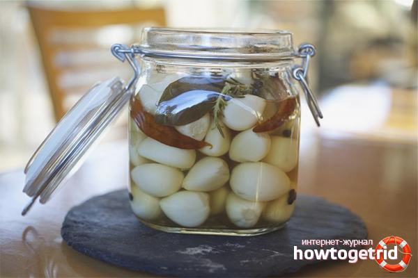 - В зависимост от размера на кутиите и окончателния резултат, чесънът се накисва в обелена или непепелена форма. Съществува и друга опция за опаковане, някои от тях се търкалят в главите си с цели глави, а други предпочитат да мариноват аперитона със зъби. Този аспект не изключва почистването, горният слой на обвивката се отстранява, дъното остава (по желание).