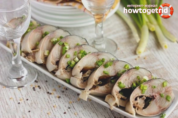 Домашните натрупвания се считат за универсални ястия. На тяхна основа се правят сандвичи, салати, продуктът се използва като самостоятелна закуска. Солена скумрия, която има изискан вкус благодарение на приготвената марината, придоби популярност. Този вид риба има много полезни свойства, неговият състав съдържа много повече протеини, отколкото в месото, яйцата, извара. В допълнение, продуктът съдържа достатъчно количество мазнини и омега-киселини, които благоприятно засягат сърдечния мускул.