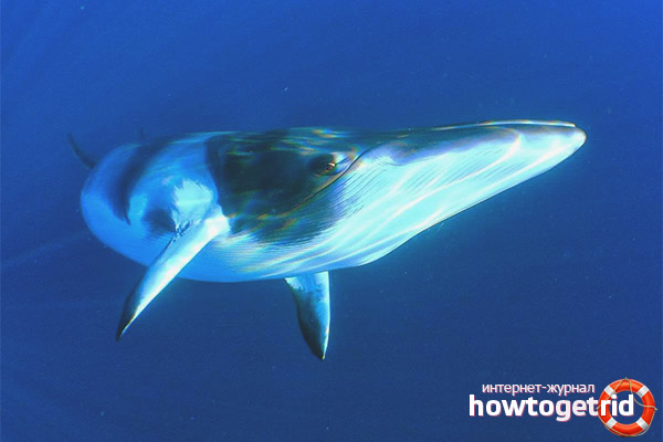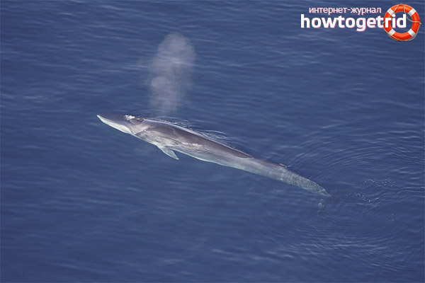 Основната разлика между представителите на този вид от други китове е асиметричното им оцветяване.В долната част на челюстта, от дясната страна, те са бели. И вляво - по-тъмно. При тези животни основата на опашката е насочена нагоре. Дърсната перка е извита към опашката. Обикновено дължината му е около 50 см. Финалът има плоска глава. Това е около 1/5 от цялата дължина на тялото на животното. Докато ядат, тези китове разширяват устата. От пъпа до долната челюст те имат много гънки. Поради тях, устата се разширява. Освен това, в процеса на ядене на храна благодарение на тях, водата преминава през устата. За да улови и да отреже дребна плячка, китът използва мустаците си. Накрая се състои от няколкостотин пластини.