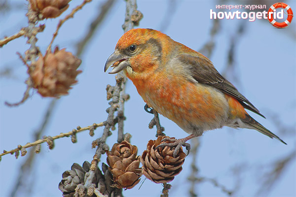 - Основният продукт в храната на въпросните индивиди са смърчовите шишарки. Поради особената форма на човката, тези птици премахват люспите от конусите без никакви проблеми.Следващите слънчогледови семена klesty vyklevyvayut. Струва си да се отбележи, че птицата ще я изяде достатъчно само няколко зърна.