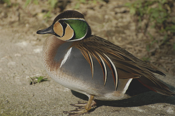 По отношение на сянката си опереното оперение е такова, че охра и зелените цветове преобладават в тона. Жените са по-скромно облечени, те са доста кафеникави, с тъмни ръбове над перата. На клюна на жената има белезникави петна.