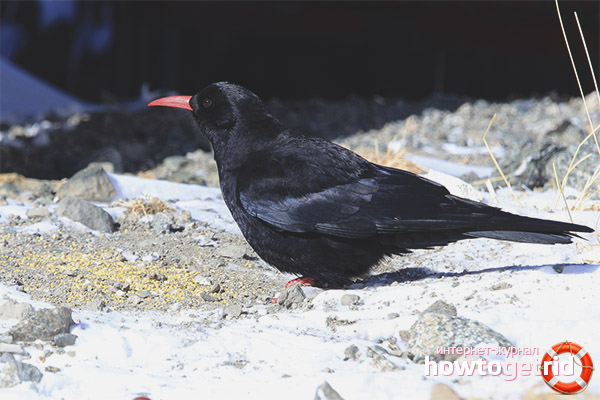 Този тип птица като захапка не е прекалено придирчив към храната.В някои райони на пребиваване тези птици се хранят предимно с храни, които се намират в депата за отпадъци. Основната диета е безгръбначни, малки насекоми, плодове и растителни семена. Част от храната, необходима за подхранване, се събира от клюшките в близост до мястото за гнездене, а останалите се издигат високо в планините.