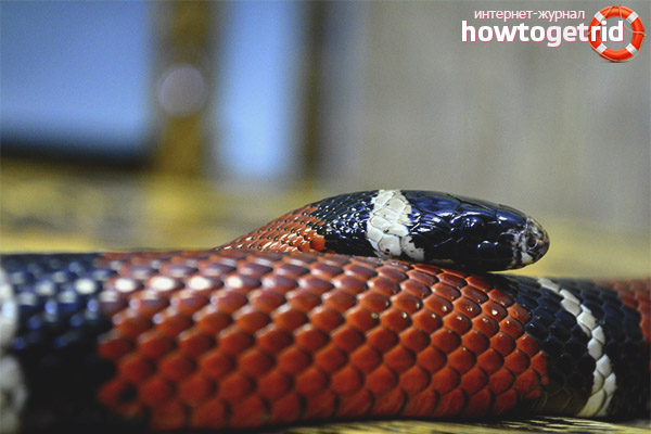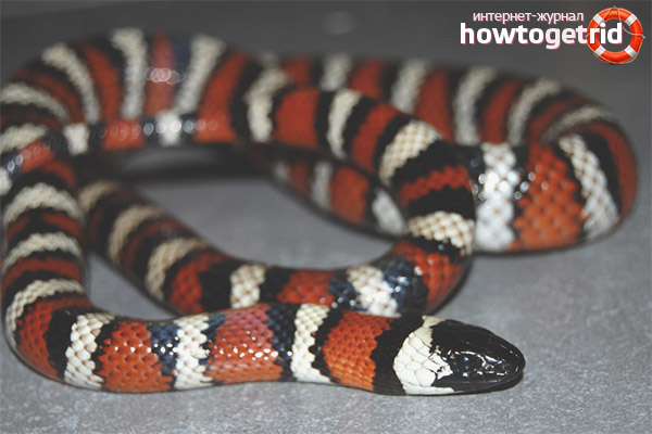 - Аризона кралски. Това е един от най-малките подвидове. Като правило хората не надвишават един метър дължина. Черната глава е закръглена. Цветовете на тялото са представени от набор от пръстени с червени, черни и жълти (понякога бели) цветове.