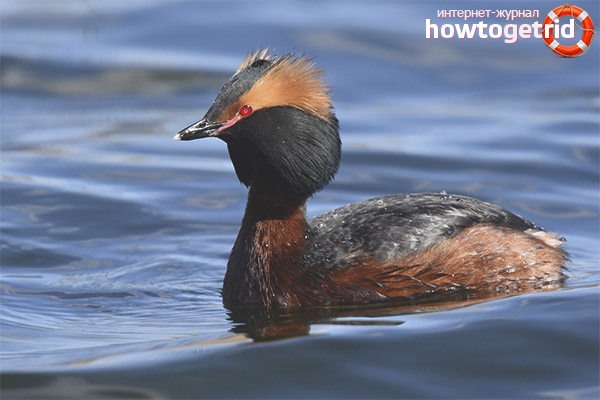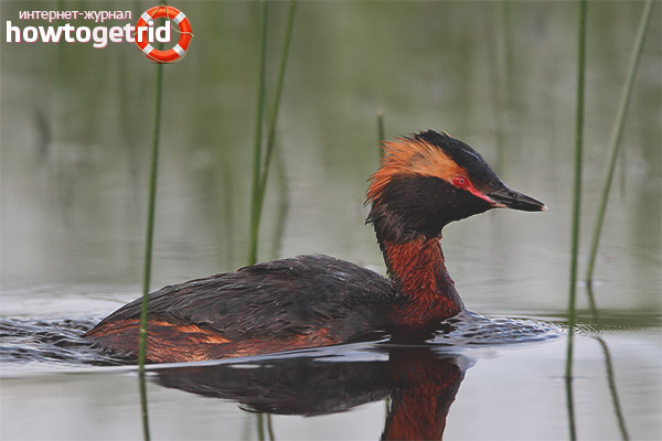 Видът на Червената гърба Grebe е рядка и много оригинална птица, която бързо губи номера си днес.