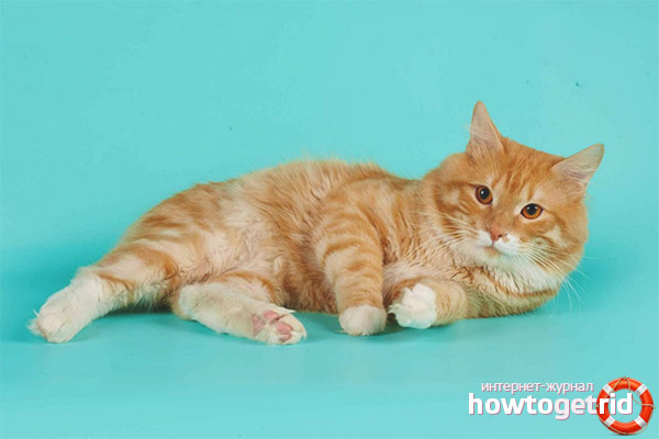 - Опашката се отдръпна. Гръбнаците от 5 до 7. Те се намират в права линия, но в края на краищата те се обръщат в цикъл. Обикновено такава опашка за котка е недостатък.