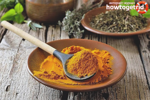 За да подобри ефекта на куркума, той се използва в състава на маски в комбинация с други полезни съставки.