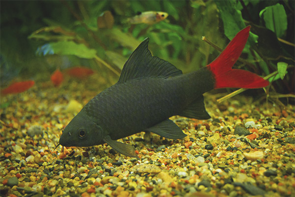 - Двуцветните акули скочат високо, така че се грижи за резервоара с капак. Ако осигурите домашен любимец с висококачествена храна, той не лекува леко растенията. Ето защо е необходима растителност, но не и в ущърб на свободното пространство за плуване.