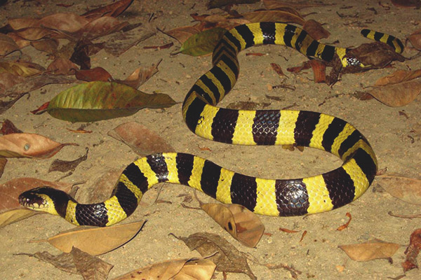Belt Krayt е един от най-опасните змии на планетата. Тя се промъква в жилищата на човек и напада през нощта.Крайт бързо прилага голям брой ухапвания и здраво задържа кожата. Змийската отрова е толкова опасна, че жабите умират няколко секунди след ухапване, а по-големите животни умират 15 минути по-късно. Човешката смърт се случва през следващите 10 часа. 1 захапка може да убие около 10 възрастни.