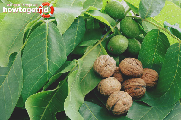 - Поради своя хемостатичен ефект, ореховата листа се използва за приготвяне на различни тинктури, отвари, пасти за поглъщане за кървене. Съставът бързо се забавя и допринася за бързото възстановяване на тъканите.