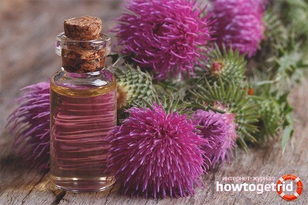 Масло от Thistle се използва в народната и традиционната медицина за лечение на кожни заболявания, които създават неестетичен външен вид и придружават проблема със сърбеж и болка: дерматит, псориазис, невродермит, витилиго, алергии, екзема, топлинни и химически изгаряния. Подпомага бързото регенериране на интегрални елементи.