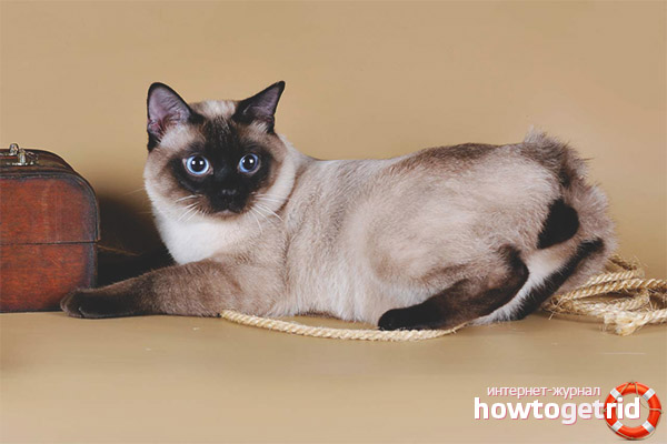 Представители на тази порода са били използвани като западни повелители в древни храмове - на територията на югоизточния азиатски континент. Котките седяха до вазата и около опашката около обекта, което доведе до кривината му. И поради факта, че животните гледаха внимателно наоколо, за да избегнат кражбата на вазата, очите й накрая станаха наклонени.