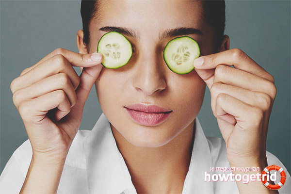 - Най-често срещаната рецепта за борбата с торбички под очите се счита за прясна краставица. За подготовка на средствата за защита достатъчно, за да решетка малък зеленчук с голям ренде. Поставете кашата върху клепачите и около очите. На върха на маслото от краставица поставете памучна гъба, напоена с мляко. Алтернатива е смес от заквасена сметана и нарязан магданоз.