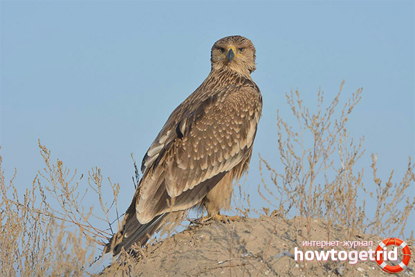 - Птицата принадлежи към видовете хищници, тя е голяма и уважавана към себе си. Гробницата е известна със своите огромни мощни крила и същата внушителна опашка. От един поглед към представеното лице става ясно, че тя може да убие лисицата преди смъртта.