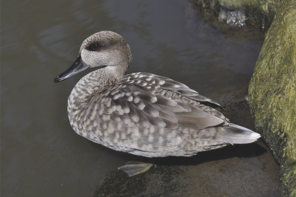 Цветът се задържа непроменен през годината. Навън тя прилича на обикновена речна патица, различаваща се само по отношение на поведението, принципа на провеждане на чифтосване и т.н. Птицата получава своето име поради истинския мраморен цвят - бял (сив) петна и пластири, които се срещат на цялото тяло на бежово-сива основа.Върху крилете на орел няма огледала, характерни за патиците от водолюбиви птици. На гърлото има напречен образ. Кафяво (при мъже) и светло (на женски) място се разпространява около очите и задната част на главата. Бузите и гърлото на птицата са светло сиви. Коремът и бедрата имат белезникав цвят. Лапите на мраморния канал също са кафяви. Законопроектът при мъжете е сив цвят, а при женските е по-пигментиран черно. Очите на вибрациите също са тъмни.