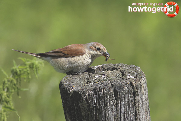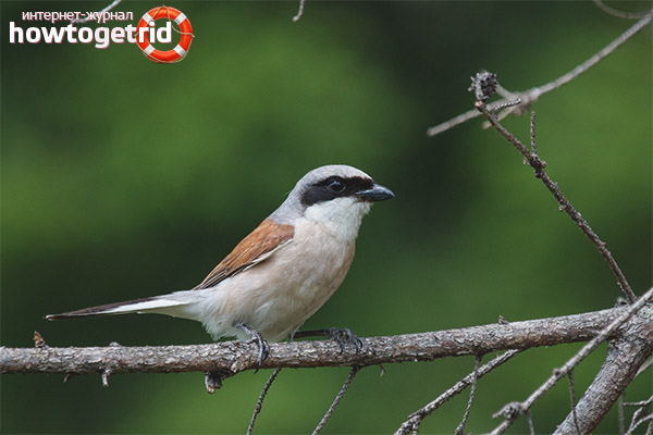Общата птица с червенобяла птица е птица, принадлежаща на семейството на Шрикеани, счита се за група пасажери. Този човек има друго име, което звучи като Шрайка. Тя получи това име поради формата си силует, който има голяма прилика с плевел силует.