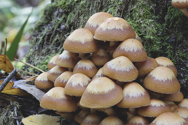- Psatirella Candolla е условно отровно разнообразие от гъби, които растат в доста големи групи от края на пролетта до средата на есента. Формата на капсулата е форма на камбана, вълнообразни ръбове. Повърхността на капачката е почти гладка, има малки мащаби, цветът от жълто-кафявия цвят на ненаситения кафяв.Бялата плът на гъбичките е много крехка, с характерен изразен аромат на гъби и вкус. Крак, уплътнен в основата, цвят по-крем. Спорът на прах има кафеникав оттенък.