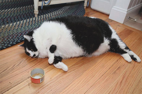 Ако домашният любимец има неограничен достъп до храна или собственикът дава твърде голяма единична порция, това ще доведе до увеличаване на обема на стомаха. Котката ще преяжда все повече и повече и бързо ще спечели допълнително тегло.