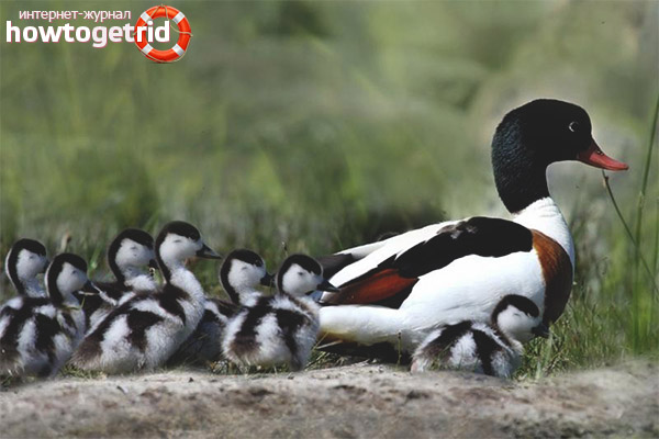 Любителите на натуралисти, които гледат птиците, забелязват многократно картината на докосване на грижите за тяхното потомство, когато първо ходят патица по време на разходка, а после патиците я преследват, а бащата на цялото семейство се придвижва зад всички, които внимателно търсят опасност.